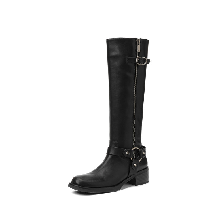 Women’s Knee High Tall Boots Wide Calf Low Heel Riding Boots Fall Tall High Boots for Women Zippers with Buckles