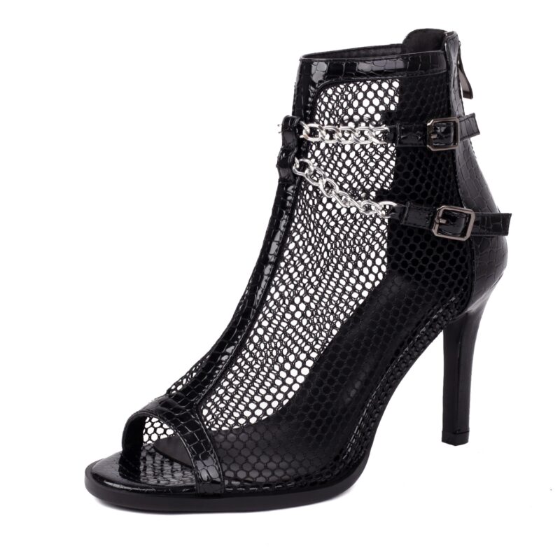 Womens Sandals High Heel Open Toe Mesh Sandals Boots Metal Chain Decor