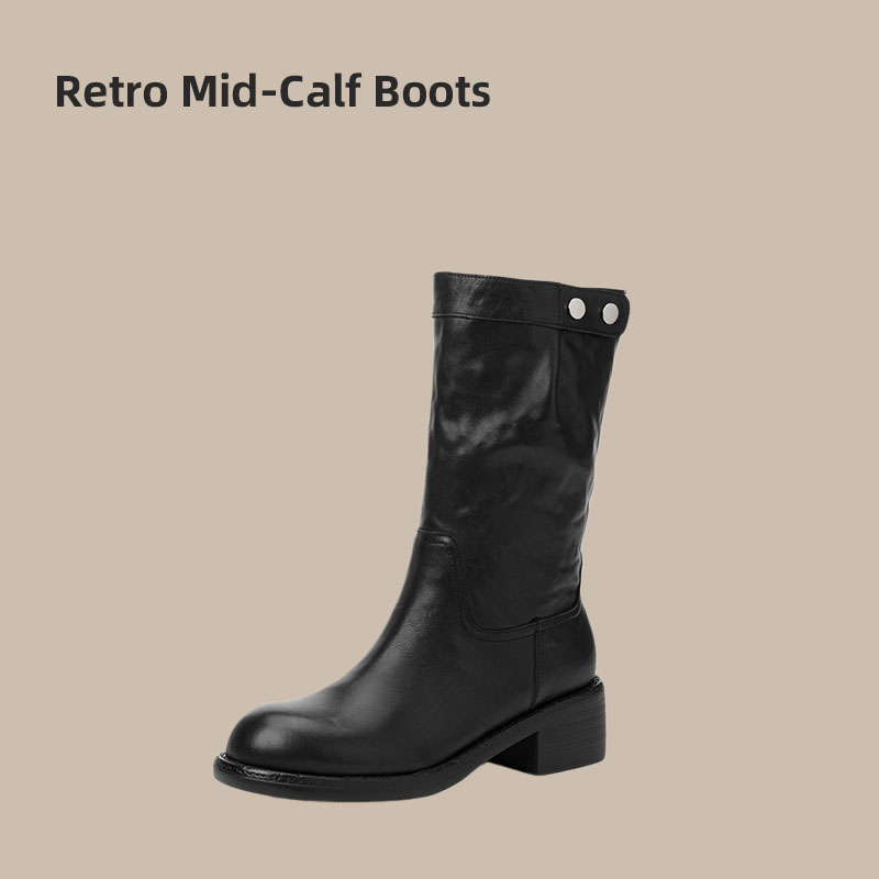 Ladies Fashion Flat Round Toe Buckles Boots