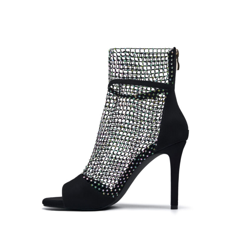 Luxury Rhinestone Mesh Peep Toe Stiletto Ankle Boots – Elegant Evening Party High Heel Booties