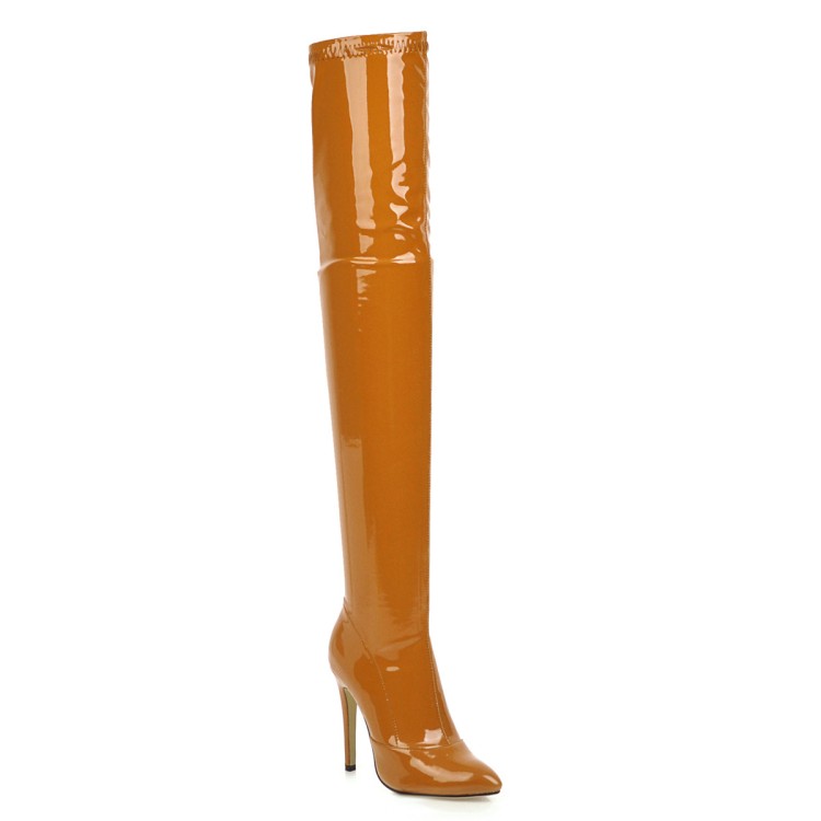 - Premium Design: Elevate your style with our over-the-knee boots featuring a towering 4.3” stiletto heel and a shaft height of 22.83”. Crafted with stretchy suede fabric, these boots offer a snug fit that adjusts to the shape and size of your legs, while the calf girth of 12.59” and top opening circumference of 15.35” ensure a comfortable yet secure wear. design side zipper allows for easy slipping in and out.